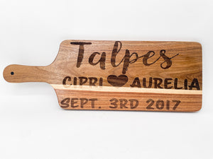 Elevate your gatherings with our high-quality, custom charcuterie board. Made from sustainably sourced wood, this elegant board is perfect for serving cheeses, meats, and fruits. Personalize it with names, monograms, or special messages using our precision laser engraving—ideal for weddings, housewarmings, or corporate gifts. Thoughtfully designed, durable, and gift-ready, our boards make a lasting impression and complement any home decor.